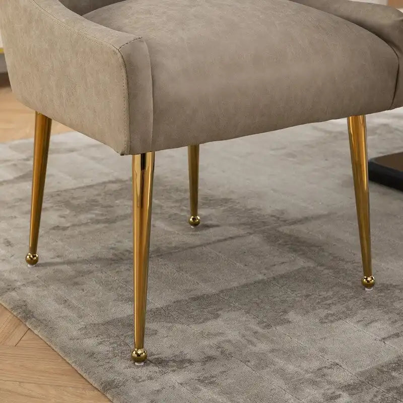 Built to last, our chairs feature sturdy metal legs that guarantee stability, ensuring your dining experience remains uninterrupted. The addition of gold-colored back pulls adds a subtle yet striking touch of sophistication, enhancing the overall aesthetic appeal.